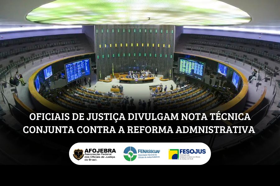 As três entidades de representação nacional dos Oficiais de Justiça — AFOJEBRA, FENASSOJAF e FESOJUS-BR — divulgaram Nota Técnica conjunta contra a Proposta de Emenda Constitucional da Reforma Administrativa (PEC 32/2020), atualmente em tramitação no Congresso Nacional.