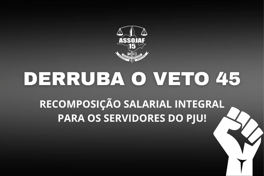 ASSOJAF-15 CONVOCA OFICIAIS DE JUSTIÇA A ADERIREM AO ABAIXO-ASSINADO PELA DERRUBADA DO VETO 45