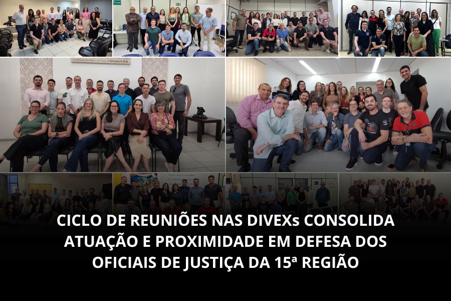 CICLO DE REUNIÕES NAS DIVEXs CONSOLIDA ATUAÇÃO E PROXIMIDADE EM DEFESA DOS OFICIAIS DE JUSTIÇA DA 15ª REGIÃO