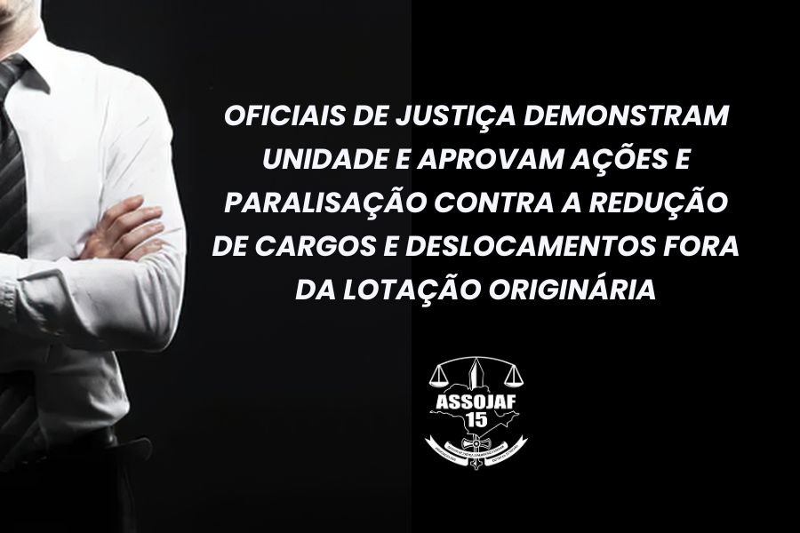 OFICIAIS DE JUSTIÇA DEMONSTRAM UNIDADE E APROVAM AÇÕES E PARALISAÇÃO CONTRA A REDUÇÃO DE CARGOS E DESLOCAMENTOS FORA DA LOTAÇÃO ORIGINÁRIA